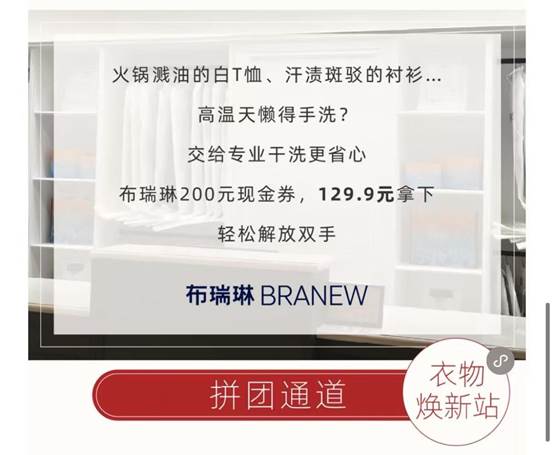★衣物焕新福利:布瑞琳洗衣200元现金券仅需129.9元。