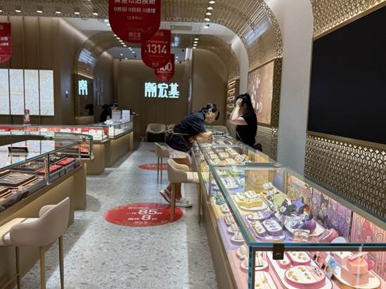 △潮宏基店内,顾客正在选购。